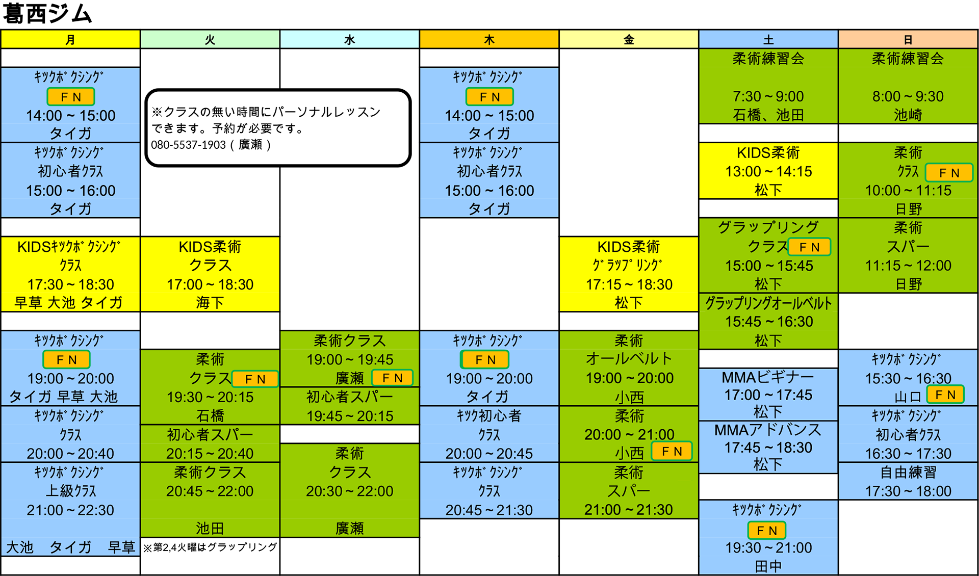 - AM9:00よりパーソナルレッスンができます。080-5537-1903(廣瀬 ※要予約)
